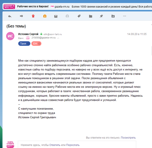 Работа в Кирове